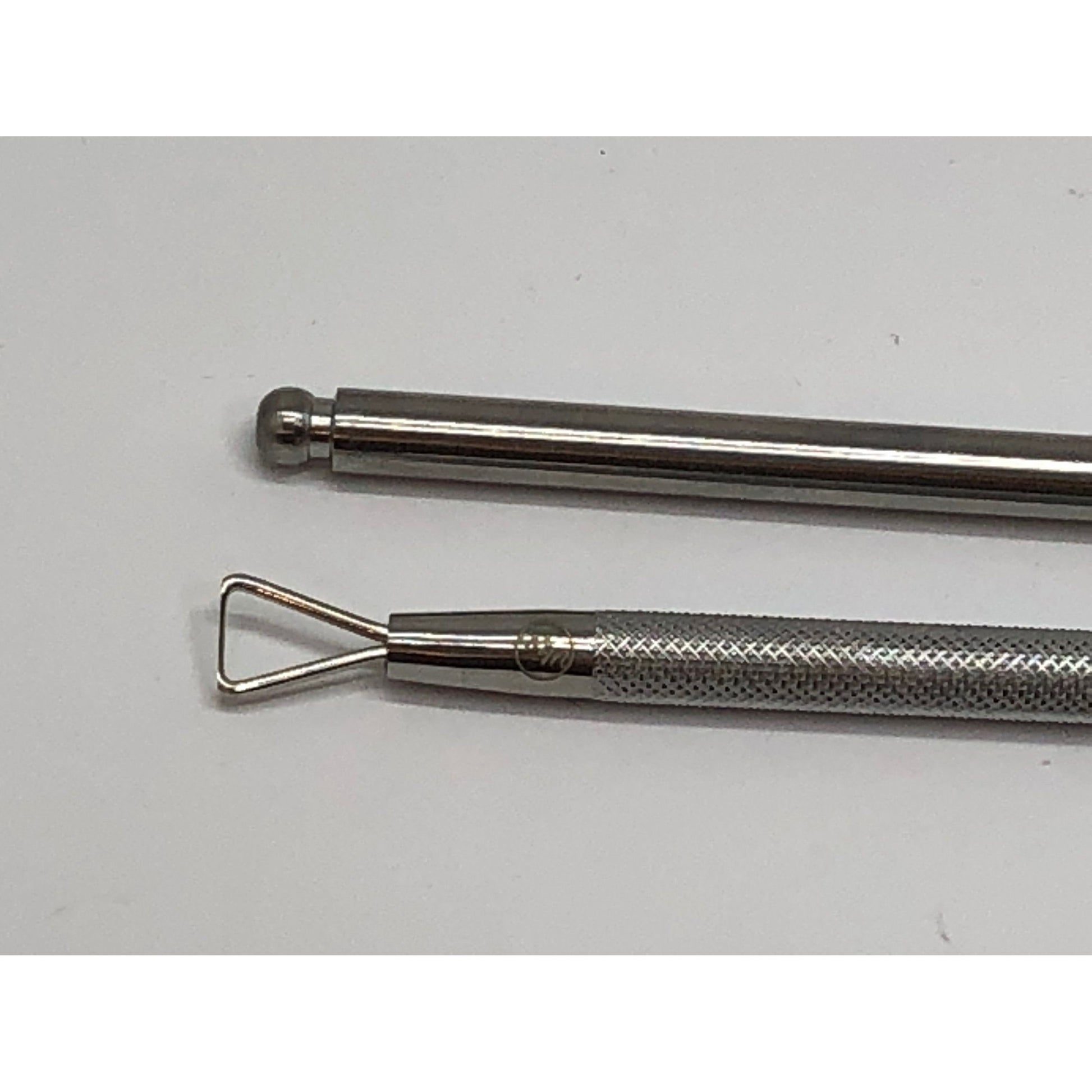 Use this stainless steel gel polish triangle remover tool to easily scrape gel polish from the natural nail without damaging the nail plate. Can also be used to push back cuticles during any nail service.