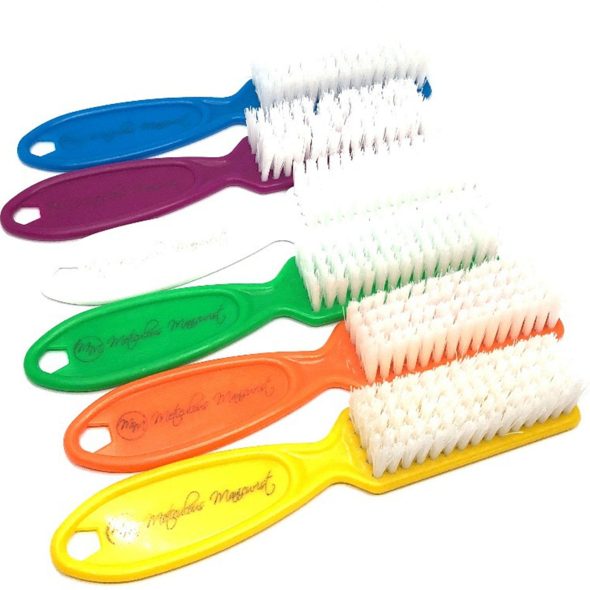 Did you know State Boards of Cosmetology has deemed fluffy nail brushes are unable to be sanitized? Therefore, cannot be used on clients to remove residual dust. But plastic handled brushes with nylon bristles can be completely submerged in a wet sanitizer and can be used to remove remaining powder from the fingertips.